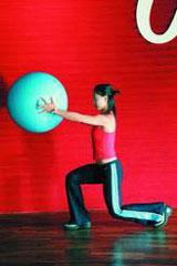 仰臥,手里拿一個網球,抬起雙手沖著天花板,雙腿伸直并攏,雙腳上鉤。收緊腹部及臀部肌肉,將雙肩和頭部抬離地面幾厘米。確定球是始終朝上沖向房頂,而不是向前。 |