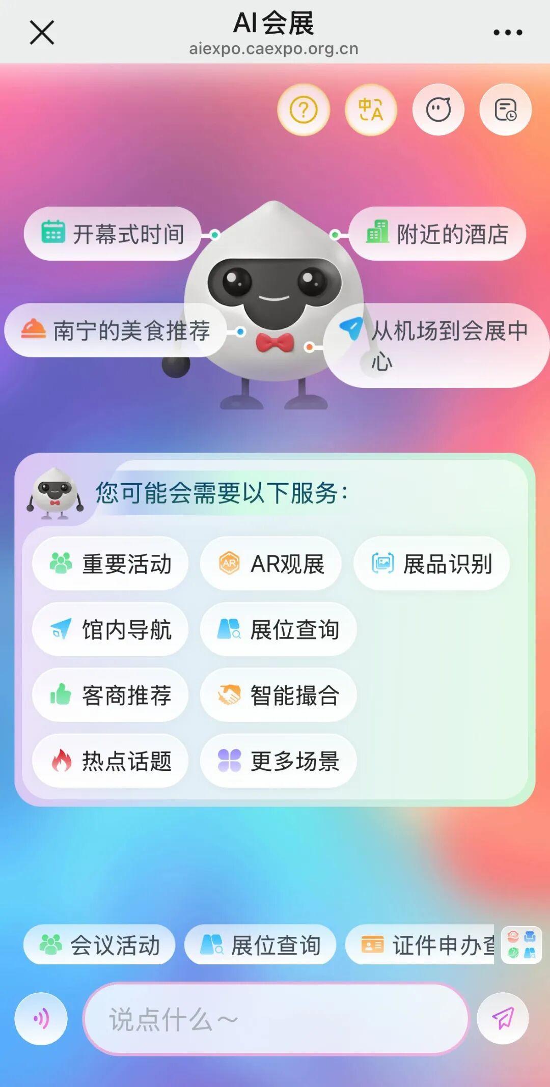 “AI會(huì)展”智能體整合大模型、多智能體、智能推薦等先進(jìn)技術(shù),面向參展企業(yè)與嘉賓提供涵蓋智能客服、導(dǎo)覽、會(huì)議安排、行程規(guī)劃、智能撮合等24類應(yīng)用場(chǎng)景的個(gè)性化服務(wù),并支持8種東盟語(yǔ)言,實(shí)現(xiàn)無(wú)障礙溝通。它是參展參會(huì)的“貼身秘書”,可陪看展、參會(huì)、找商機(jī),是人工智能時(shí)代的創(chuàng)新應(yīng)用。