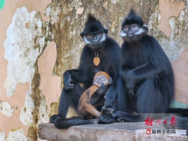 梧州零距離網-梧州日報訊(記者 吳艷虹)“看,母猴懷里抱著的就是今年7月出生的雄性仔猴,現在大概有1.5公斤重,頭頂上的金黃色的毛發(fā)有一部分已經變黑了。”9月16日,在市黑葉猴保護研究中心內,記者看到了出生不久的人工飼養(yǎng)繁殖第八代黑葉猴寶寶,該中心成功繁育的黑葉猴家族進一步壯大。