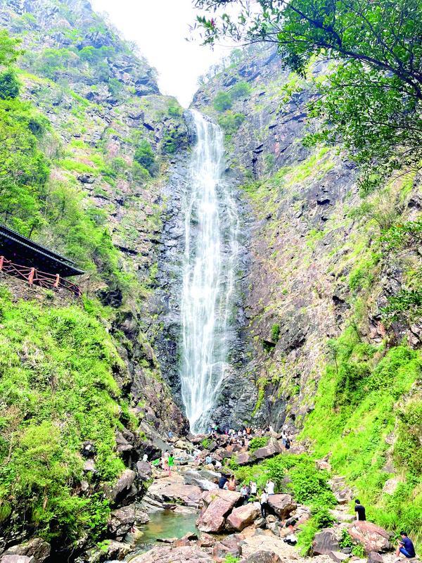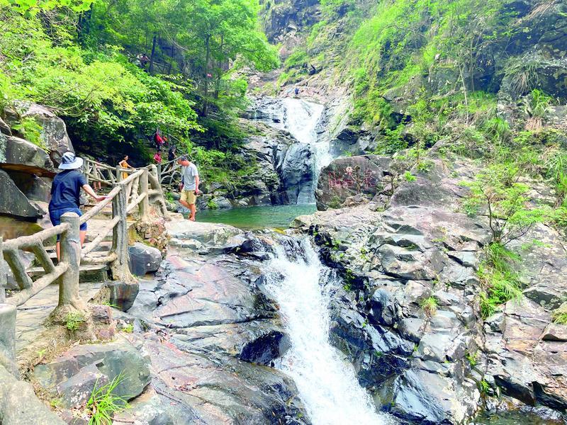 水流從崖上跌下濺起水霧,讓暑氣頓消。