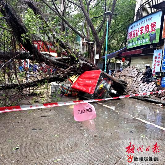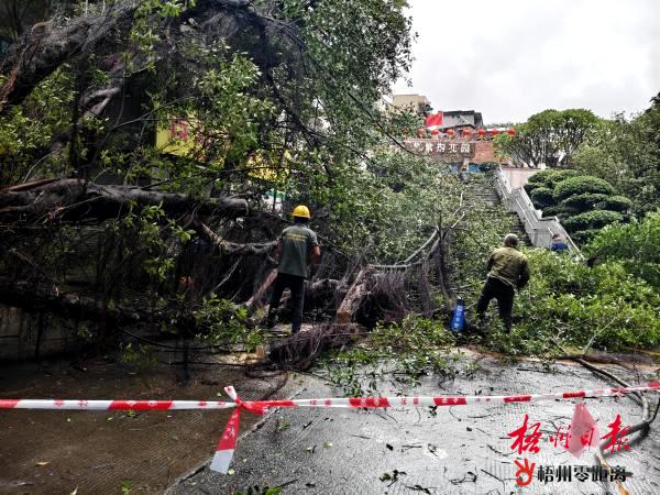 梧州零距離-梧州日?qǐng)?bào)訊 11月4日,受連日降雨影響,萬秀區(qū)富民街道棗沖社區(qū)轄區(qū)內(nèi)、紫荊花園小區(qū)附近的一棵大樹倒伏,橫亙?cè)诘缆分醒耄执蟮臉涓膳c散落的殘枝落葉阻斷交通,給周邊居民出行帶來極大安全隱患。